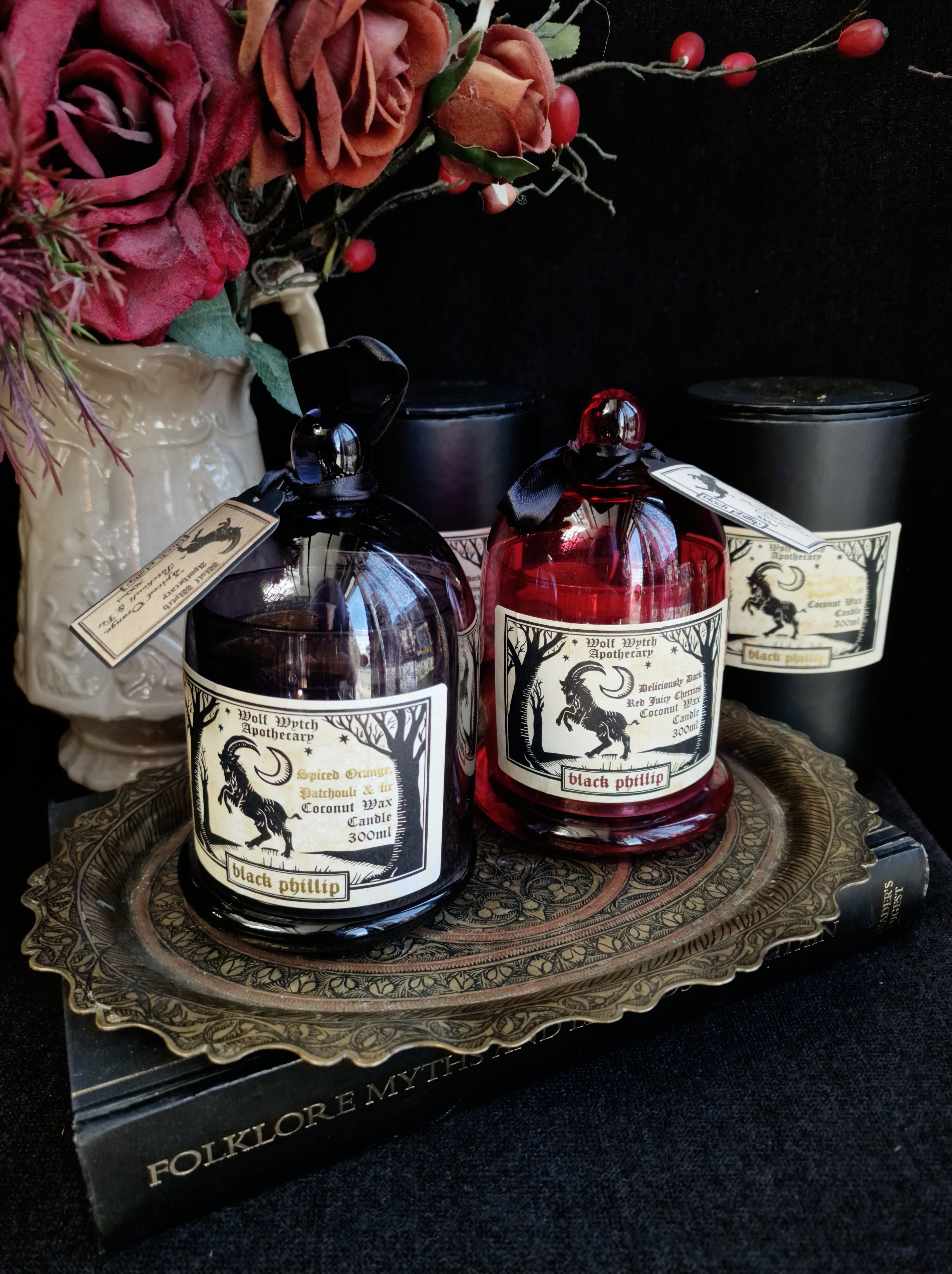 Inspired by Folklore and the Goat himself, our latest Black Phillip range features new cloche jar candles finished with a ribbon tied tag adorned with a custom Black Phillip wax seal stamp.